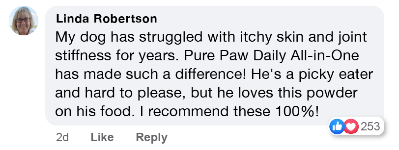 Within a few weeks, I noticed less itching and paw licking, and he’s moving around with so much more comfort. And he absolutely loves the taste! For anyone wanting to help their dog feel their best without the hassle of multiple supplements, Daily All-in-One is the answer.